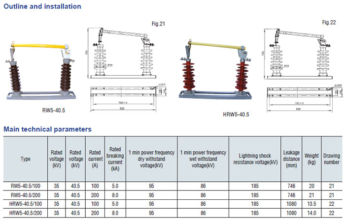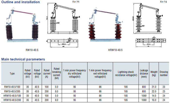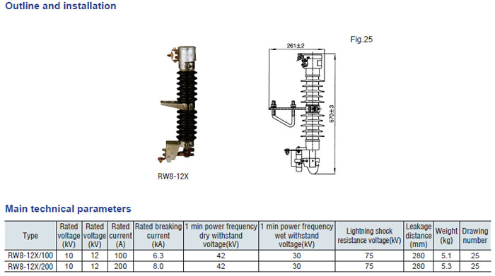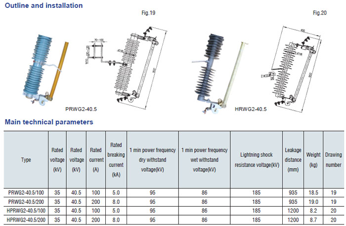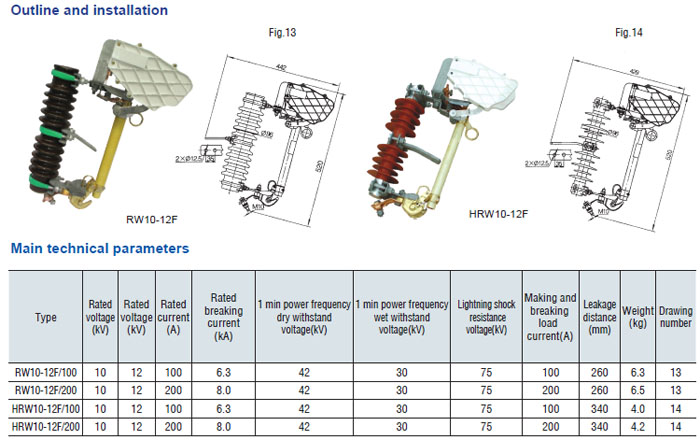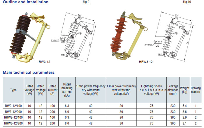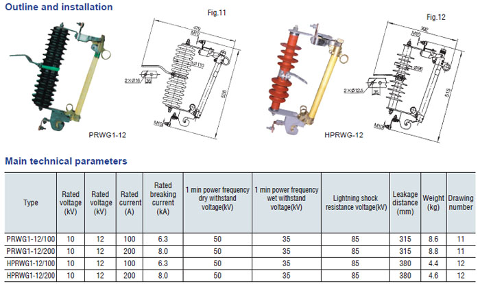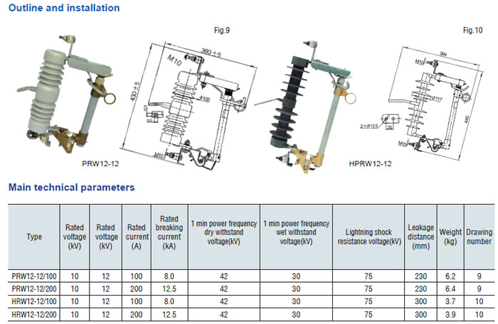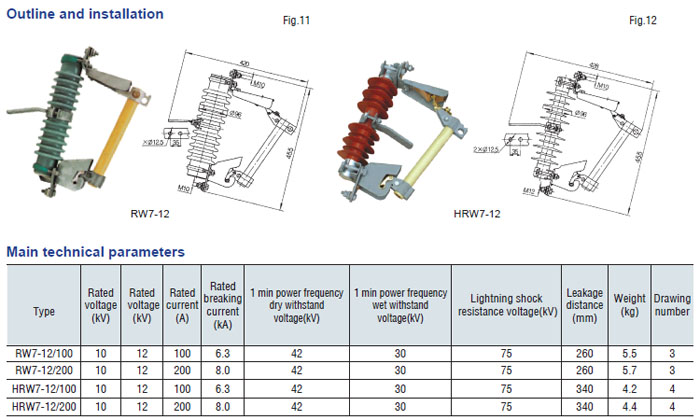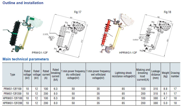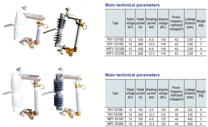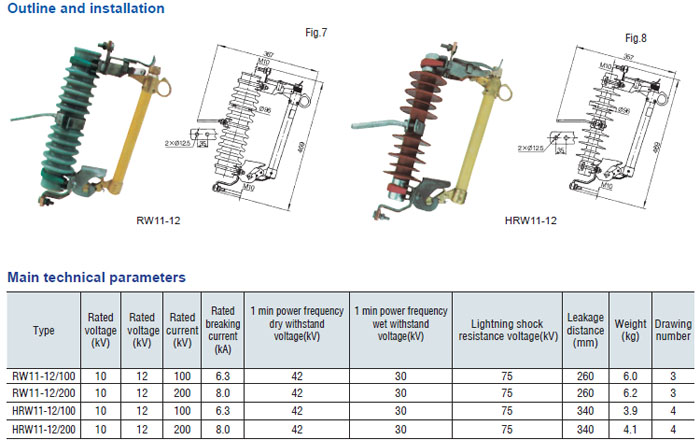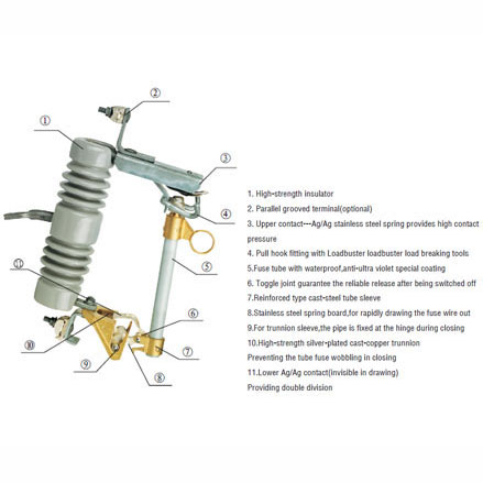 Drop-out fuse and load-drawing drop-out fuse are the outdoor high voltage protective devices. They are mounted on the high voltage side of transformer and circuit. transformer or on the main or branch distribution circuits, to protect transformers and circuit against short circuit and overload and make and break load current of transformer and circuit. Hereinto, drop-out fuse is made up of insulator support and fuse tube, its static contact is mounted at both ends of insulator support, and the moving contact is mounted at the both terminals of fuse tube that is composed of inner are extingushing tube and outer phenol aldehyde laminated paper tuber or epoxy glass cloth tube. The load-drawing dropout fuse is provided with additional reinforced auxiliary contact and arc chute, which are used to make and break the load current.