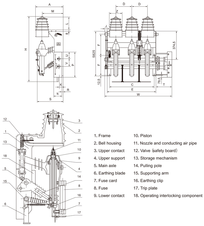 series switchgear applies to three-phase electric distribution system of rated 12kV, acting as protecting and control apparatus for