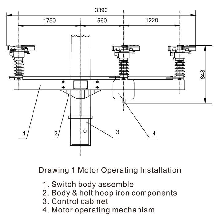 times The A, B, C three-phase of the load breaker switch is in turn installed on one great sectional galvanized square steels base,joint