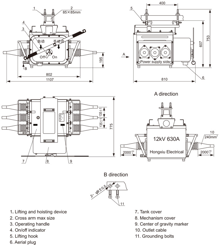 2. Besides the standard porcelain bushing, a variety of options are available including silicon rubber insulator on the epoxy equipment bushing;