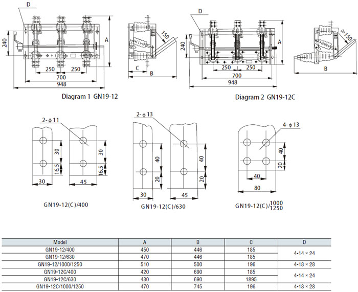 GN19-12(C) indoor HV disconnect switch applies to power system of rated voltage below 12kV,three phase AC 50/60Hz. It is equipped with CS6-1 manual-operating mechanism and is used to break and make circuit under no-load. There are additional pollution type and high-altitude type.