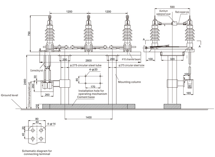 GW4-12/40.5 outdoor high voltage disconnect switch is used to open and close high voltage circuit in rated voltage 12/40.5kV, AC