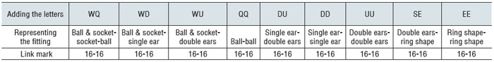 Table of end fitting type