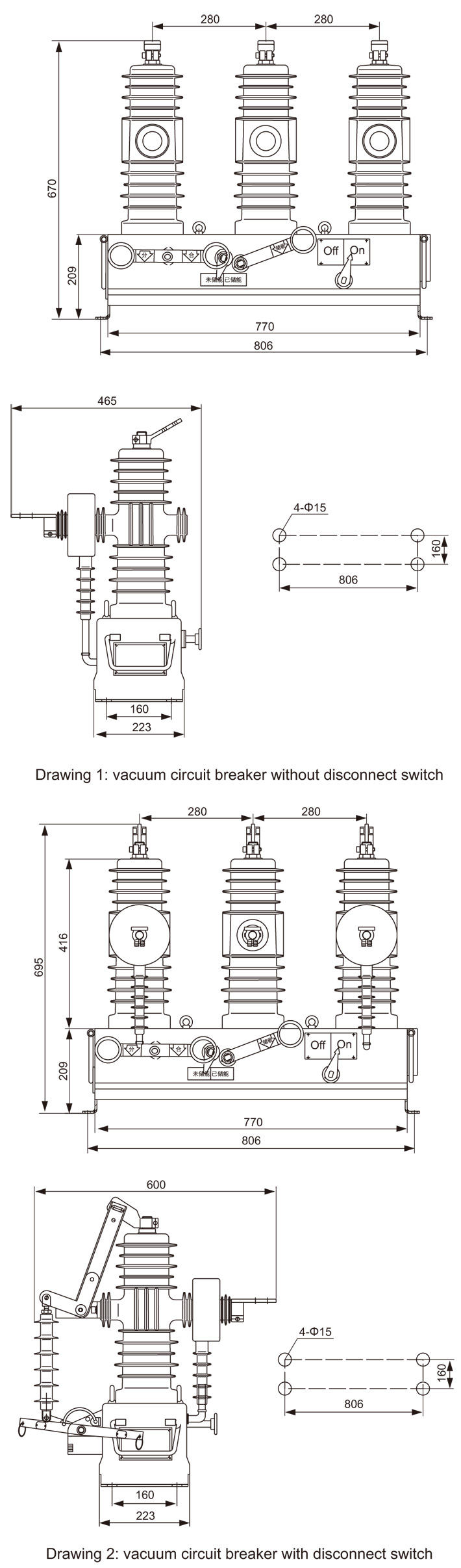 3. The switch adopts a high performance spring operating mechanism with the advantages of simple structure and long mechanical life,